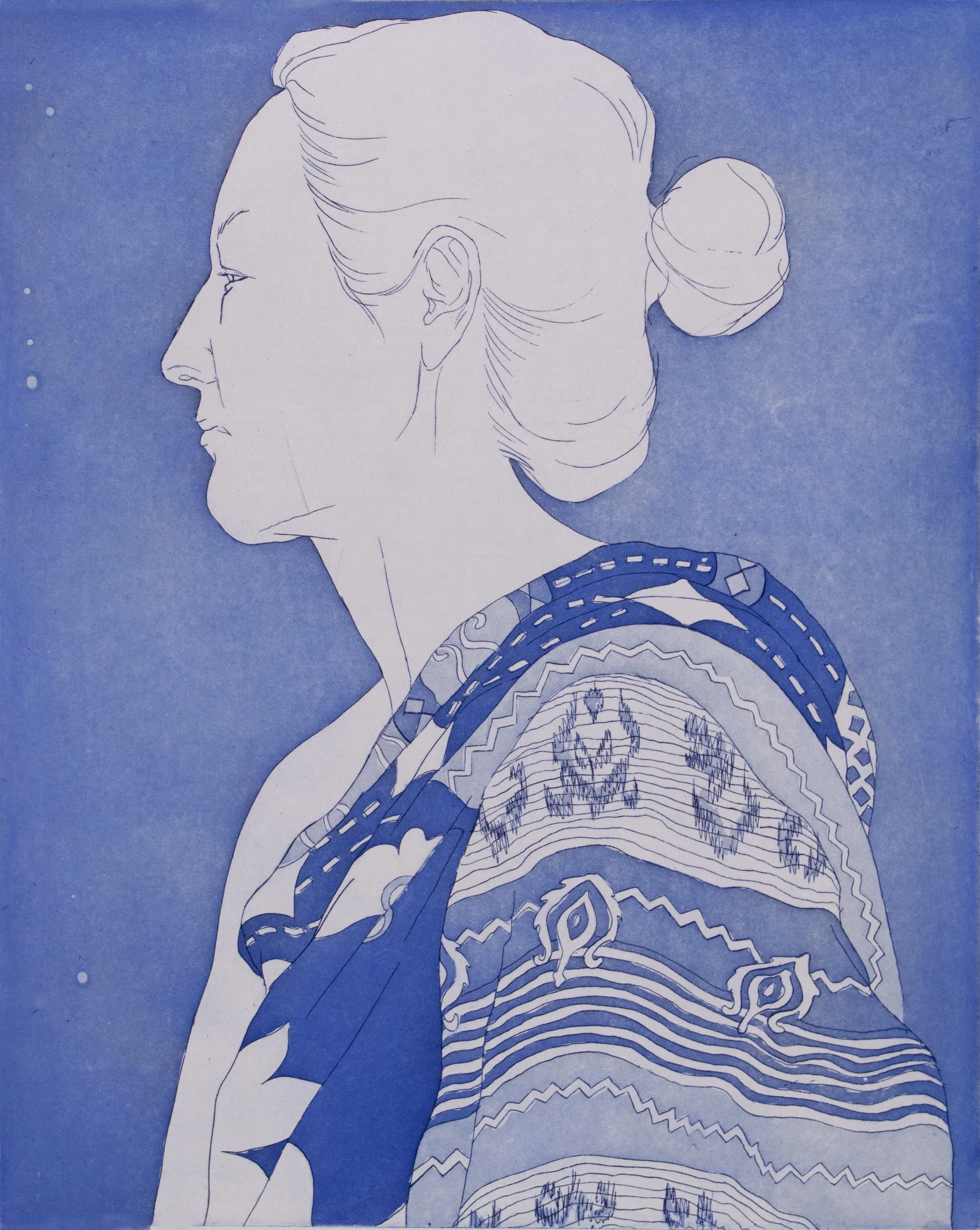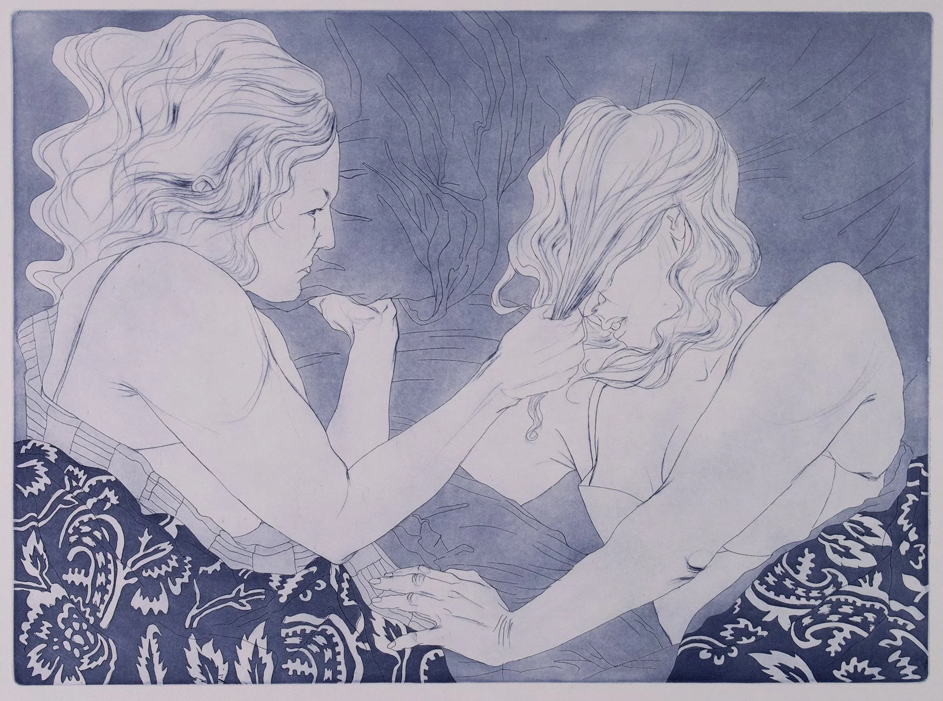 These intaglio prints are inspired by drawings made during my most recent sabbatical, which occurred early on during the pandemic. At the time, my children were home most of the day with me and my work centered around my relationships with them, as well as my relationship with myself.